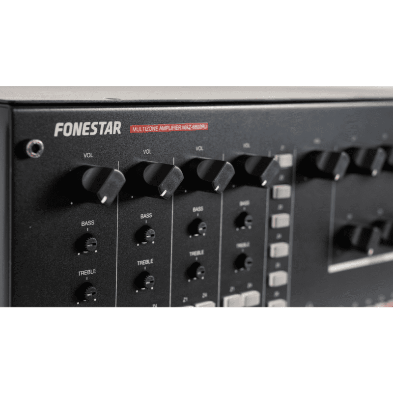 El Fonestar MAZ-6600RU es un potente amplificador de megafonía diseñado para ofrecer un control total sobre sistemas de audio multizona. Con 500W RMS y capacidad para gestionar hasta 6 zonas con volumen independiente, es la solución perfecta para oficinas, centros comerciales, hoteles y grandes instalaciones que requieren una distribución sonora precisa y versátil.