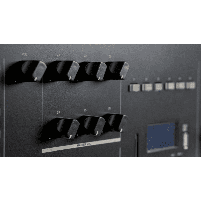 - Gestión de 6 Zonas: Permite asignar y controlar el volumen de forma independiente para 6 áreas distintas, facilitando la sonorización personalizada.