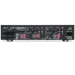 - Compatibilidad Global: Salidas preparadas para trabajar en baja impedancia (4Ω/8Ω) o en sistemas de línea de 70V y 100V sin transformadores adicionales.