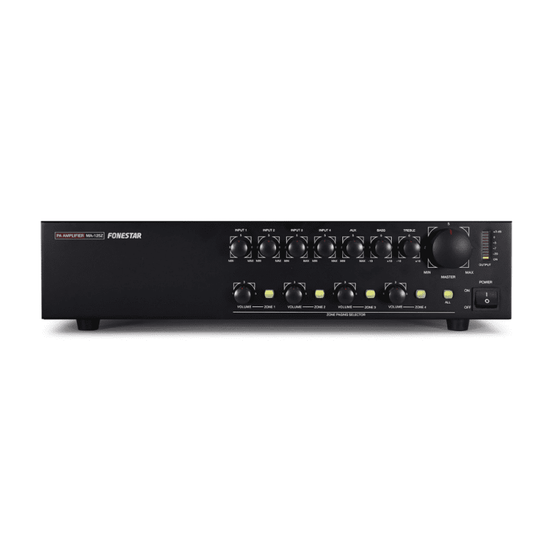 | CARACTERÍSTICAS: | Amplificador de megafonía. 4 zonas de altavoces seleccionables con control independiente de volumen. Alimentación phantom. Prioridad de avisos. |