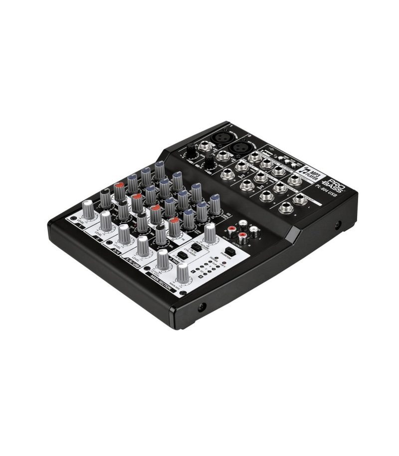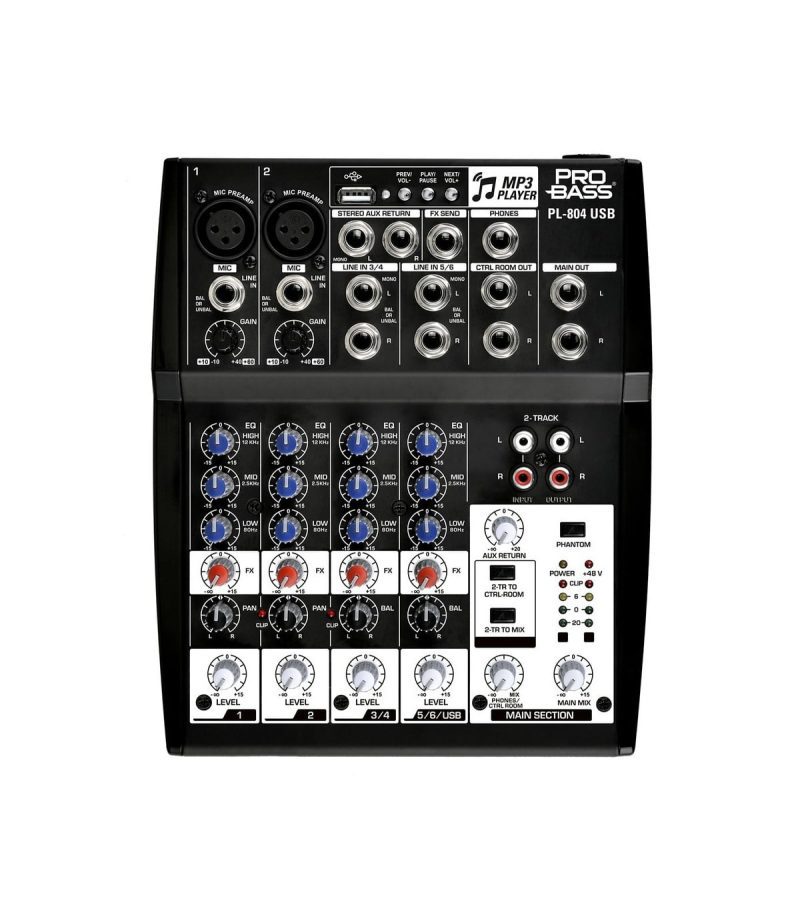 EL PL 804USB es una consola pasiva compacta ultra ligera, de construcción robusta y resistente, posee 8 entradas, phanton power canales estéreo, y conexión USB. Cada canal posee 3 bandas de ecualización.