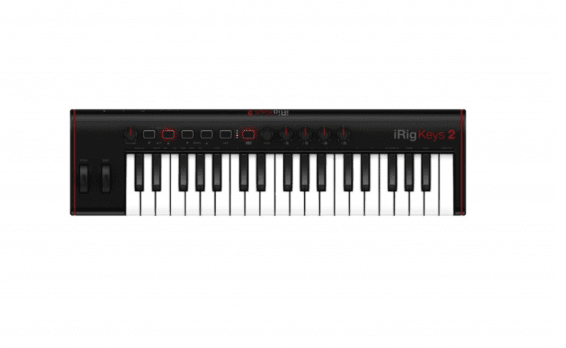 Los controladores iRig Keys 2 cuentan con un número de controles útiles: desde ruedas de modulación y pitch bend, un control de volumen de salida, botones para subir/bajar octava, botones para subir/bajar programa, un botón de configuración, un botón ALT y un codificador de datos.