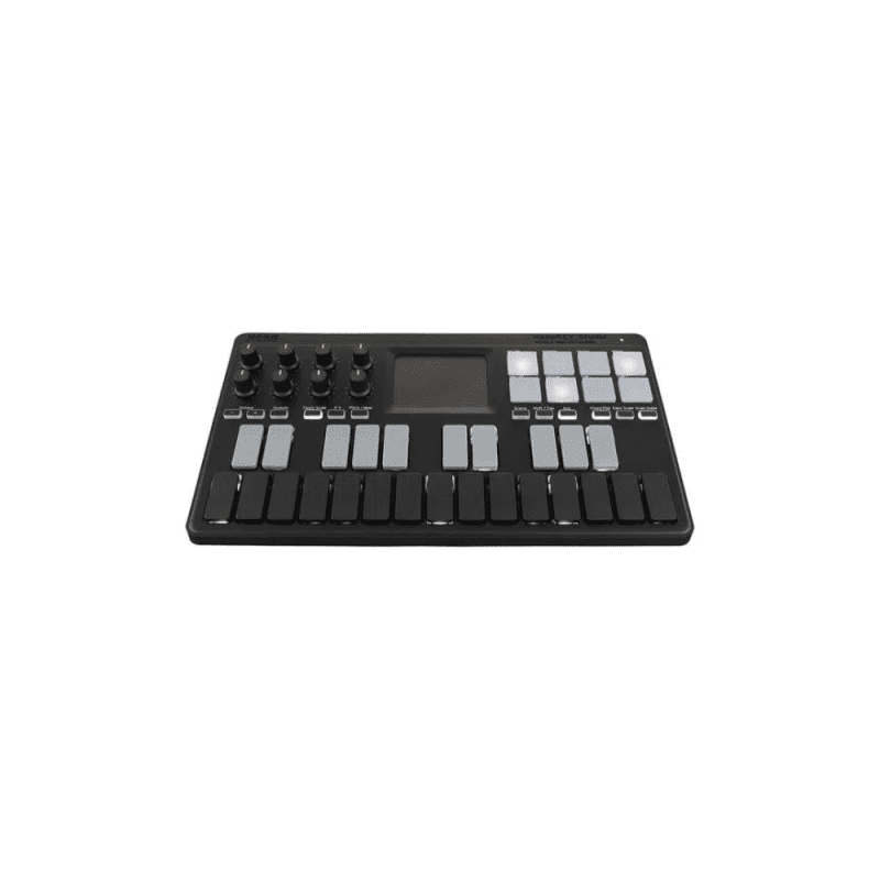 El nanoKEY Studio proporciona un teclado, botones, parches, y un panel táctil que te permite convertir tu inspiración en sonido al instante. Funciona con pilas y puede conectarse inalámbricamente con iPhone/iPad o Mac/Windows. Es un teclado MIDI compacto y portátil con el que es fácil viajar, ofreciendo gran facilidad de uso en cualquier momento y lugar.