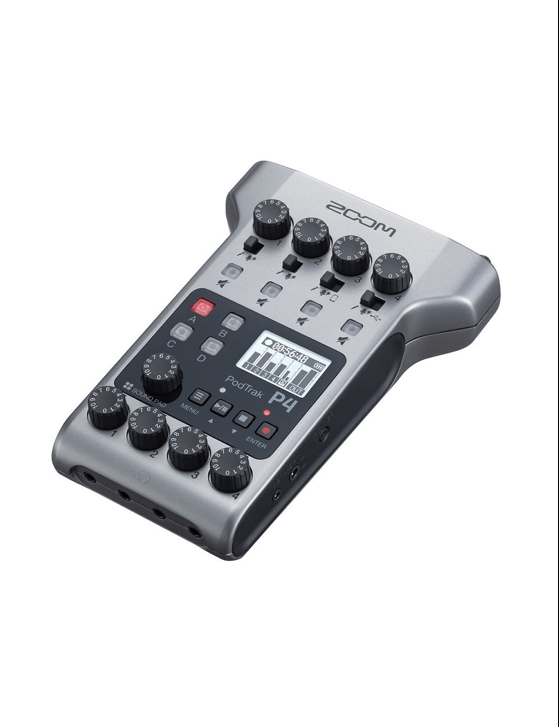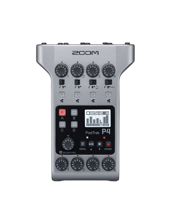 El Zoom PodTrak P4 es un grabador de podcasts multipista portátil y rentable que le permite grabar rápidamente hasta cuatro micrófonos, manejar 2 llamadas remotas sin eco simultáneamente, disparar sonido muestras, y proporcione alimentación de auriculares por separado para todos sus invitados, todo al mismo tiempo y con una simplicidad refrescante.