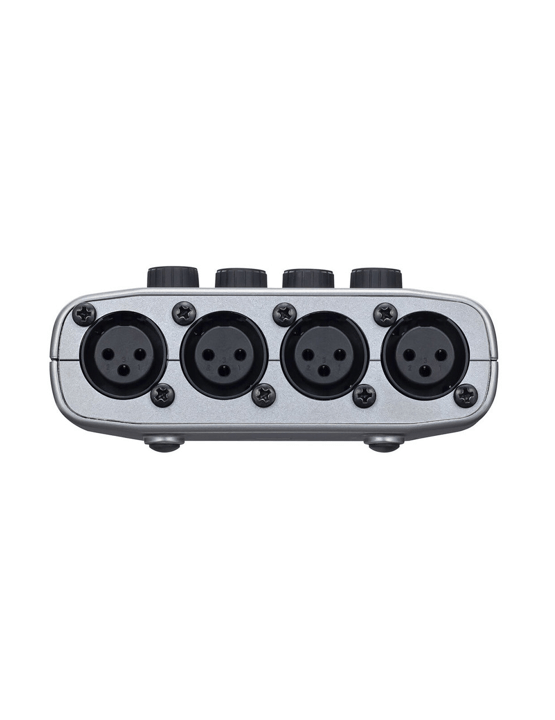 Ya sea que confíe en micrófonos dinámicos de estilo locutor como el Zoom ZDM-1 (disponible por separado) o prefiera el brillo de los micrófonos de condensador nítidos, los cuatro preamplificadores de micrófono del PodTrak P4 están a la altura de la tarea. Cada uno cuenta con un conector de entrada XLR balanceado, alimentación fantasma de + 48V seleccionable y hasta 70 dB de ganancia, mucho impulso para garantizar niveles de grabación óptimos con todo tipo de micrófonos, como el venerable Shure SM7B.