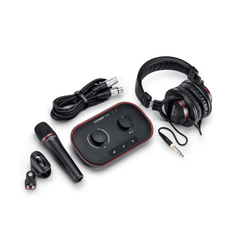 Lleve su programa más allá con Vocaster One Studio, que incluye nuestro micrófono dinámico y audífonos cerrados para que puedas elevar tu podcast de inmediato.