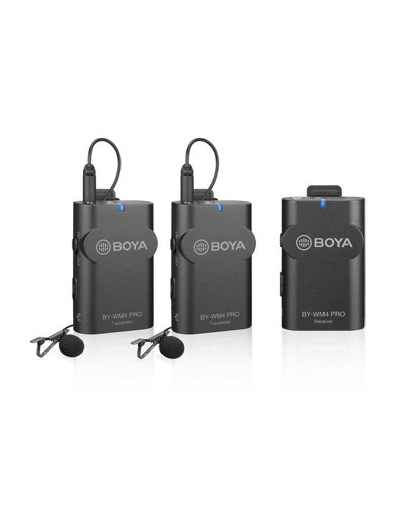 Diseñado para Productores Audiovisuales con un presupuesto limitado y aficionados al video, el sistema BY-WM4 PRO es un micrófono inalámbrico de 2.4 GHz de nueva generación, de dos canales, que permite registrar simultáneamente dos audios y guardarlos en un smartphone, tablet, cámaras DSLR, videocámaras, PCs, etc.