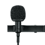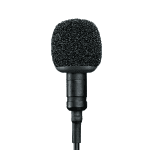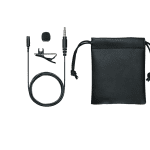 Micrófono de solapa omnidireccional de tipo condensador para uso con dispositivos portátiles para la grabación de entrevistas y producciones de vídeo, con un sonido nítido. Incluye características como la protección contra interferencias de RF, alta relación señal/ruido, alto SPL y paravientos.