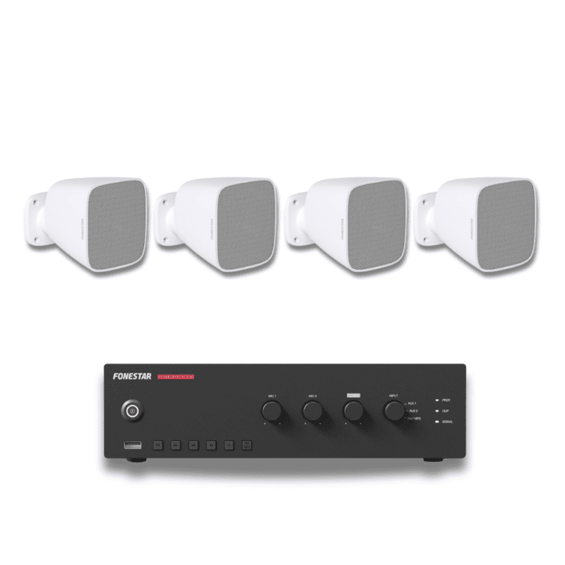 Este pack completo de sonido profesional te ofrece todo lo necesario para implementar un sistema de megafonía eficiente y robusto en tu local, restaurante, oficina o espacio público. Combina un amplificador de megafonía Fonestar PROX-60, cuatro parlantes de sonorización Fonestar SONORA-3TB con transformador de línea y un rollo de 100 m de cable paralelo 2×20 AWG para realizar todas las conexiones de forma ordenada y fiable.