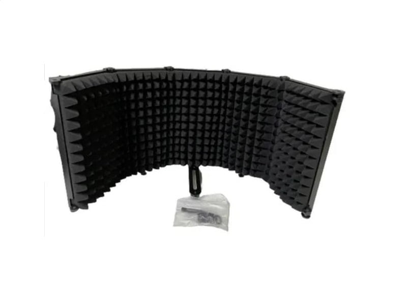 Pantalla acústica de micrófono plegable, una característica ideal ya que tu puedes manejar cuanta aislación quieres de tu ambiente.