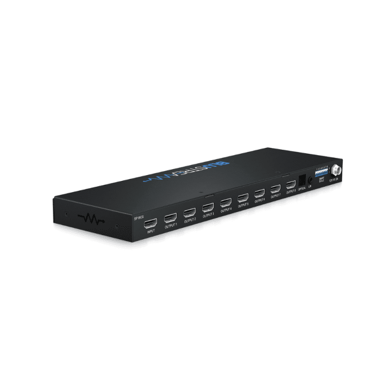 Nuestro divisor SP18CS 4K HDMI 2.0 distribuye una única fuente HDMI a ocho salidas simultáneas con separación de audio digital (S/PDIF) y analógica.